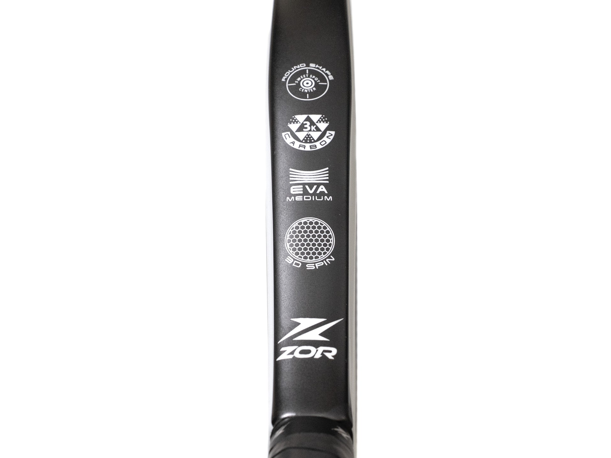 With its round shape and 3K Carbon Face, the ZOR Apex padel racket for professionals and advanced players delivers pinpoint control and a smooth feel. The EVA Medium core ensures a perfect mix of comfort and responsiveness, while the 3D Spin Decal enhances spin and shot variety. Featuring a Smart Holes System, this racket is ideal for players looking to refine their game.