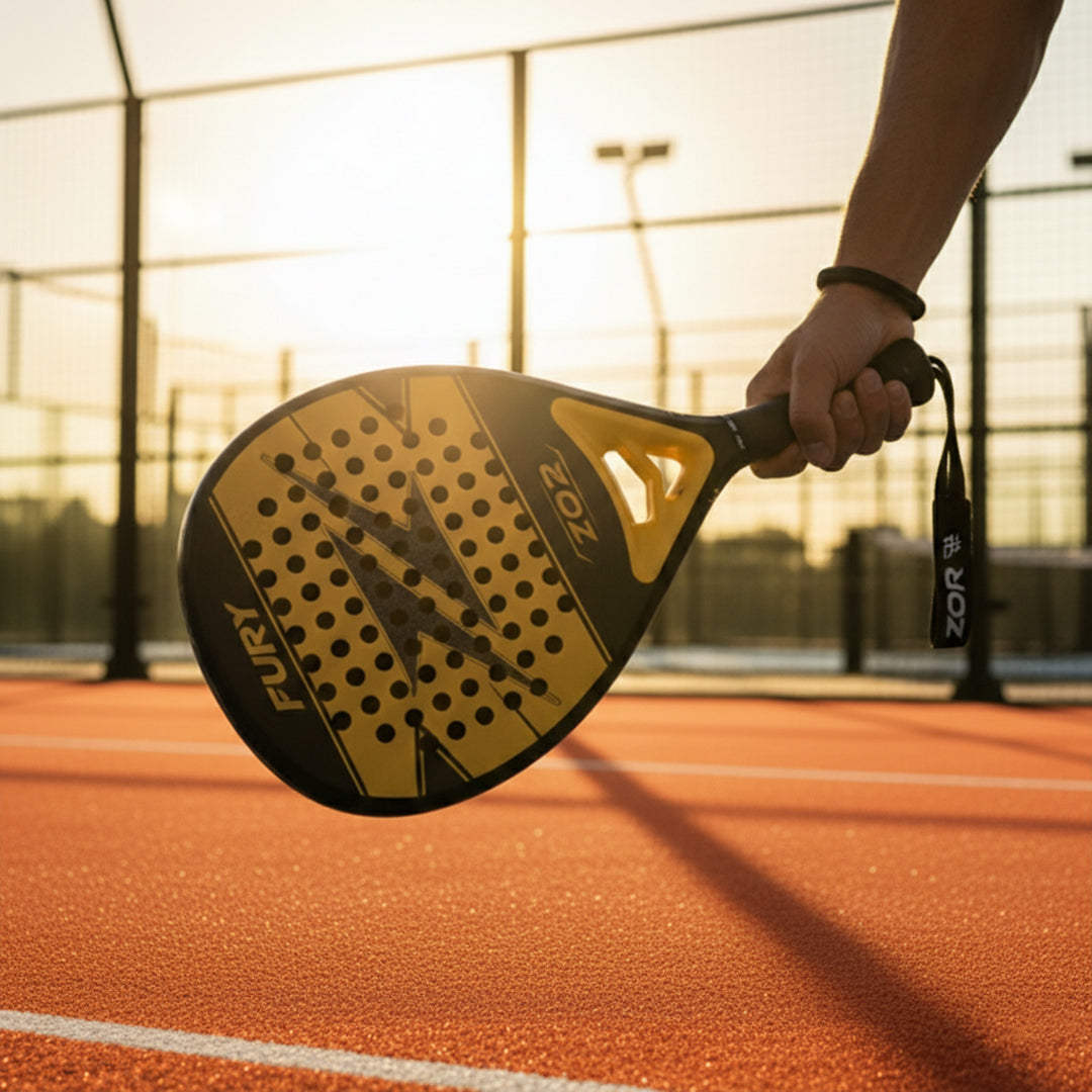 The ZOR Fury Professional Padel Racket is built with a 100% Carbon Frame and 3K Carbon Face for durability and energy transfer. The EVA Medium core ensures responsive play, while the Smart Holes System provides enhanced spin and precision. Perfect for intermediate to advanced players, this racket excels in both offense and defense.