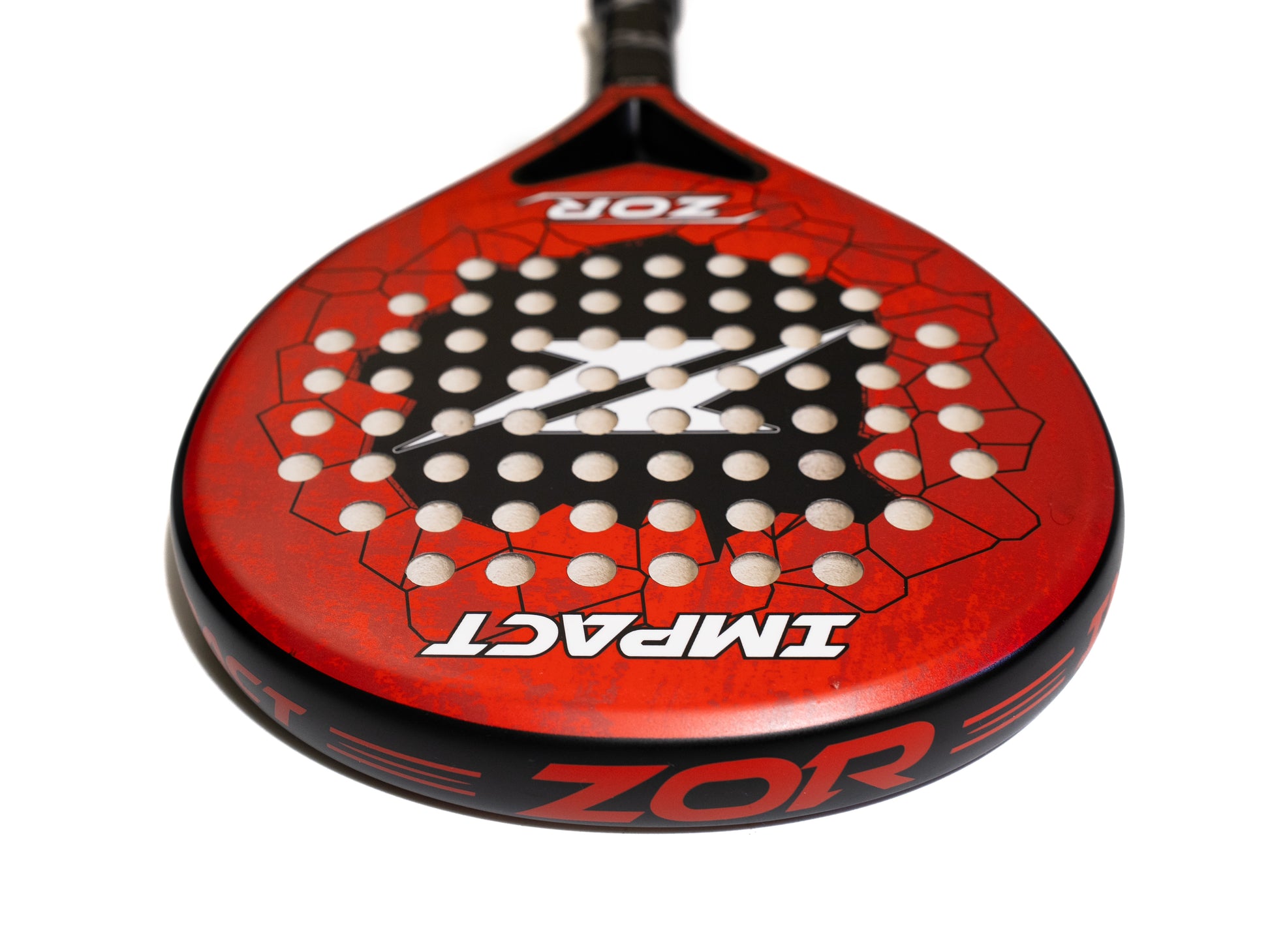 The ZOR Impact Padel Racket is designed for beginners and intermediate looking to improve their game. Its fiberglass frame and Soft EVA core provide a forgiving feel, while the round shape enhances control and precision. The Smart Holes System creates a larger sweet spot for consistent performance, making it a dependable choice for players stepping up their skills.