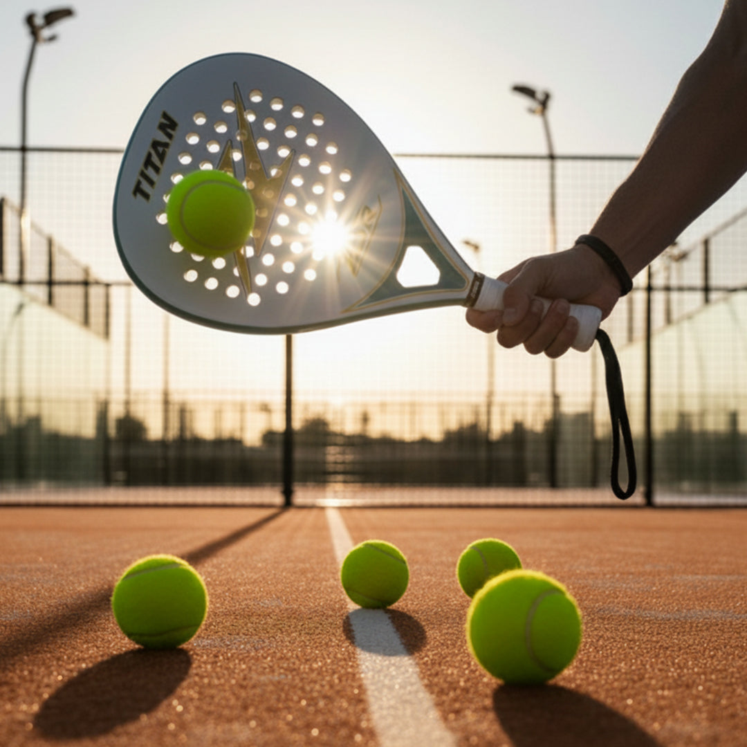 Built with a fiberglass frame and a soft EVA core, the Titan offers a comfortable, forgiving feel while providing controlled power. The round shape and Smart Holes system maximize the sweet spot, ensuring consistent and accurate shots, even on off-center hits. Lightweight and perfectly balanced, the Titan enhances maneuverability, helping players react quickly during rallies.