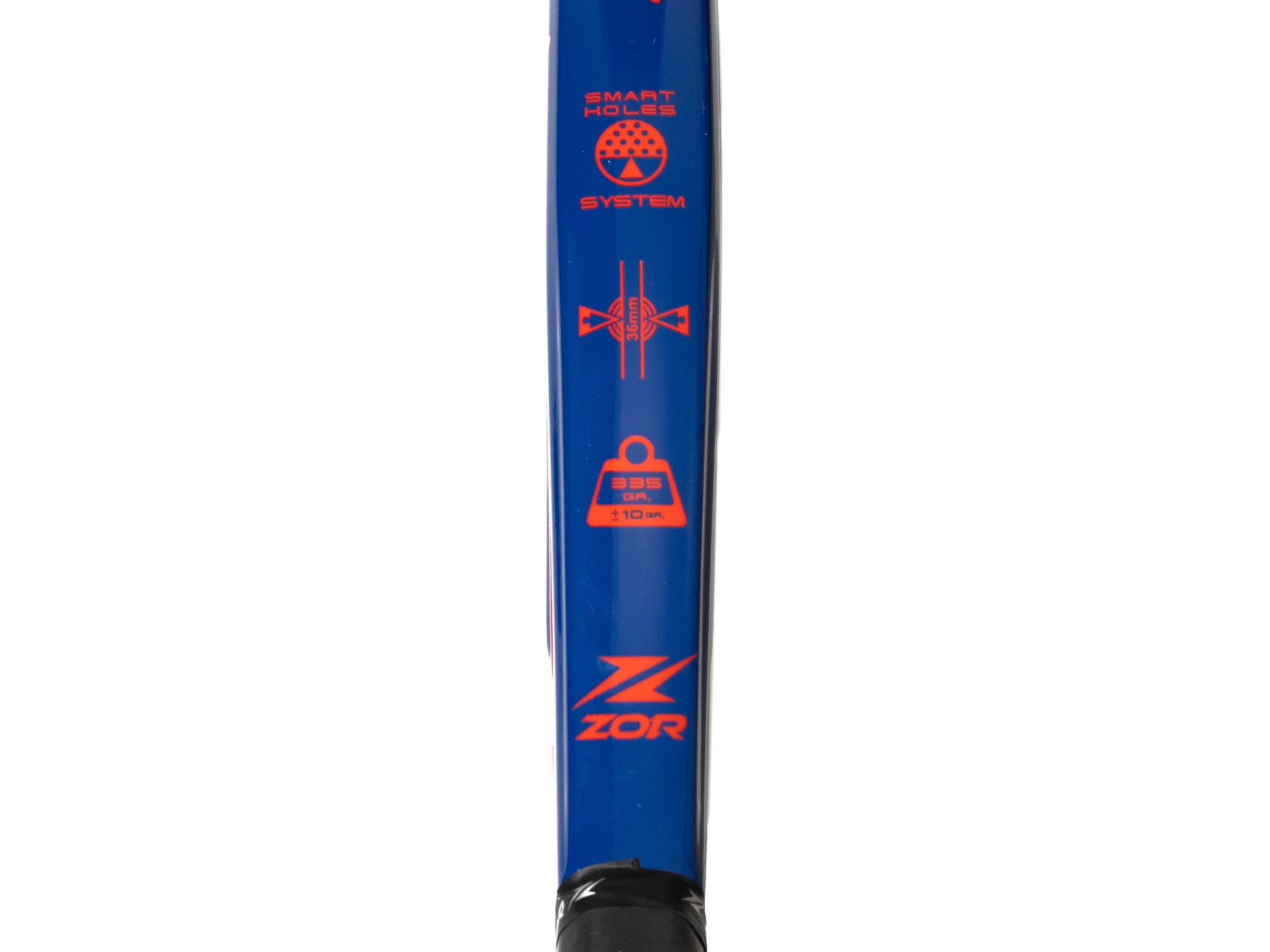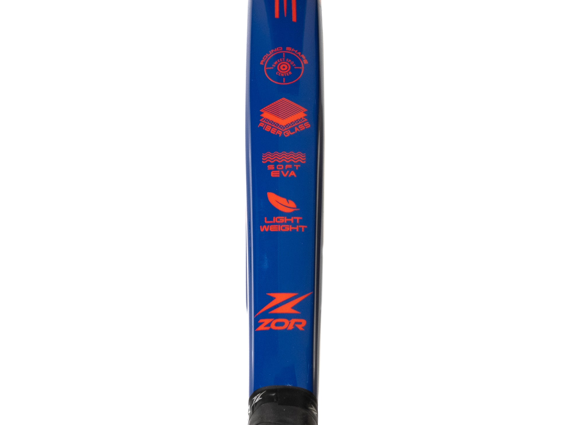 The ZOR Vortex padel racket for children combines a durable fiberglass frame with a Soft EVA core, creating a lightweight racket ideal for juniors aged 4–10. The round shape maximizes the sweet spot for forgiving shots, while the Smart Holes System enhances precision and control. With its vibrant design and easy handling, this racket is perfect for young players developing their skills on the court.